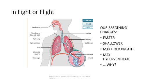 Physical survival required some amazing adaptations in our bodies. At the instant we think we’re threatened, every system, every organ, every cell in our body reacts instantaneously and synchronistically with no intellectual interference on our part. Our Autonomic Nervous System (ANS) sends messages in the form of chemicals and neural impulses throughout our body to get ready to fight, run or freeze to survive.